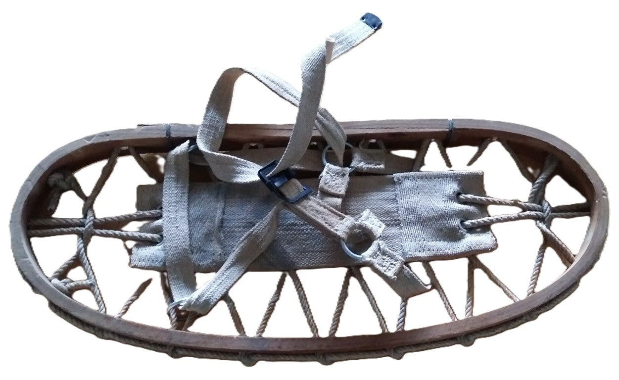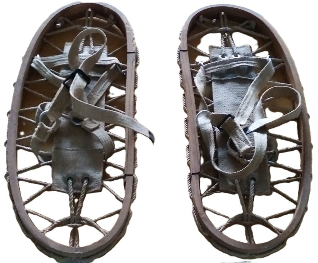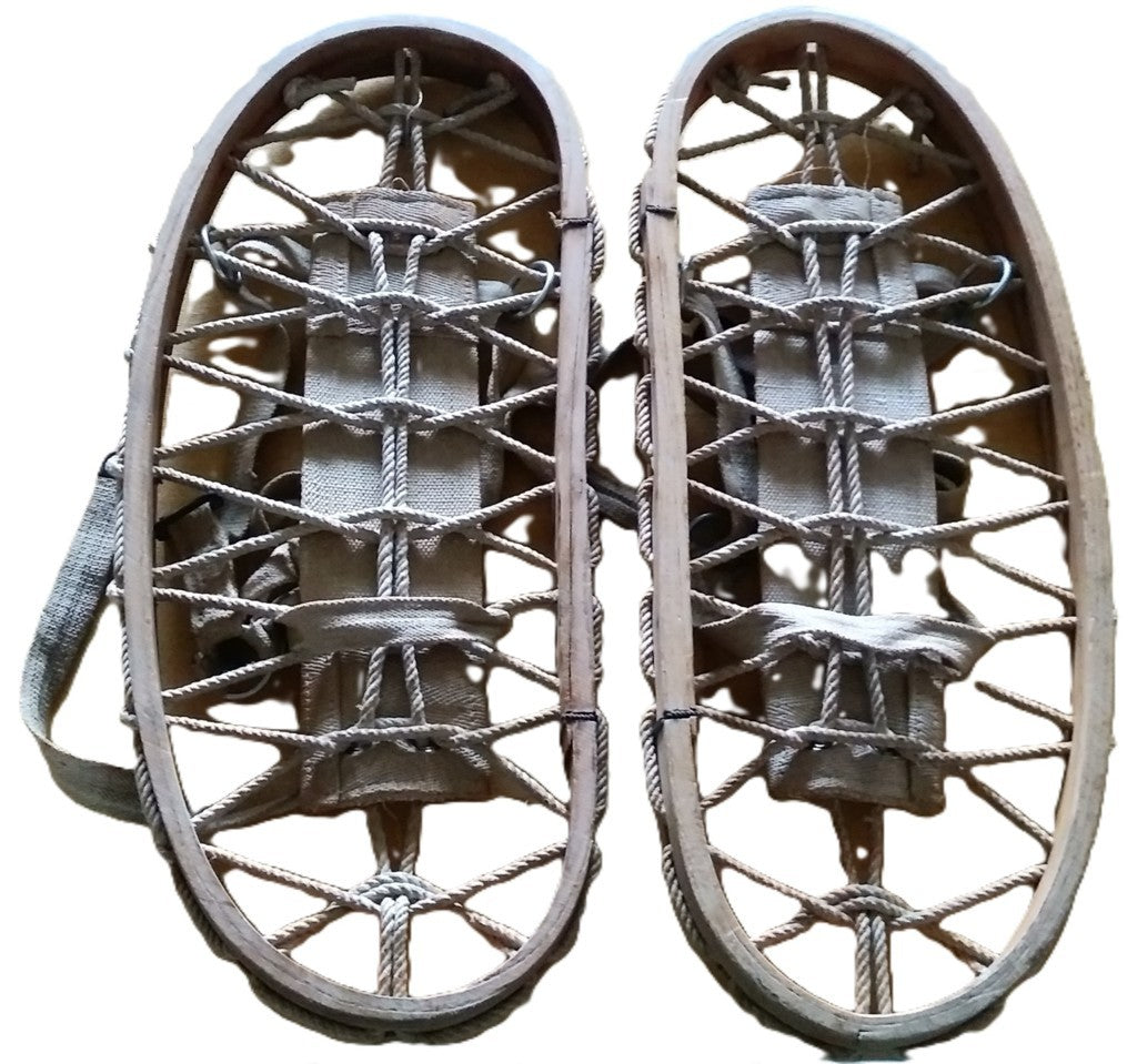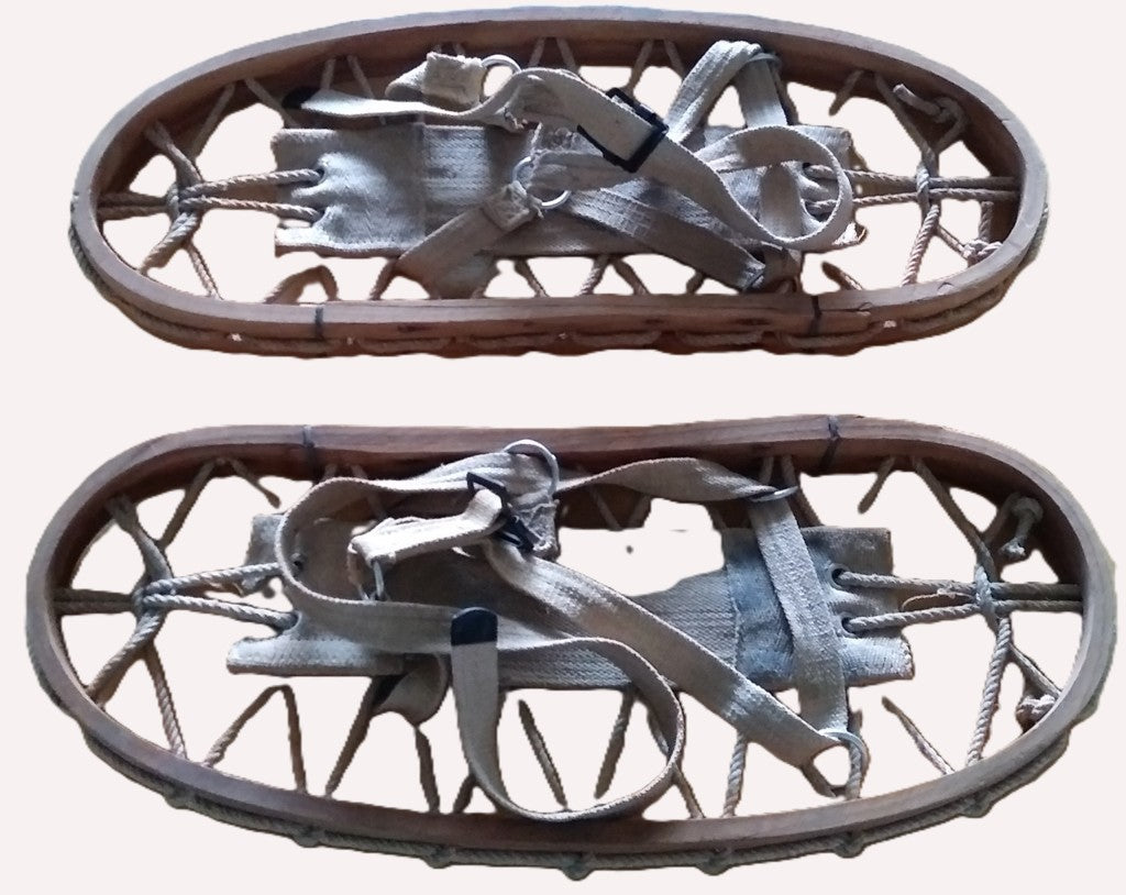 Raquettes à neige en bois et en corde de style militaire des années 1960