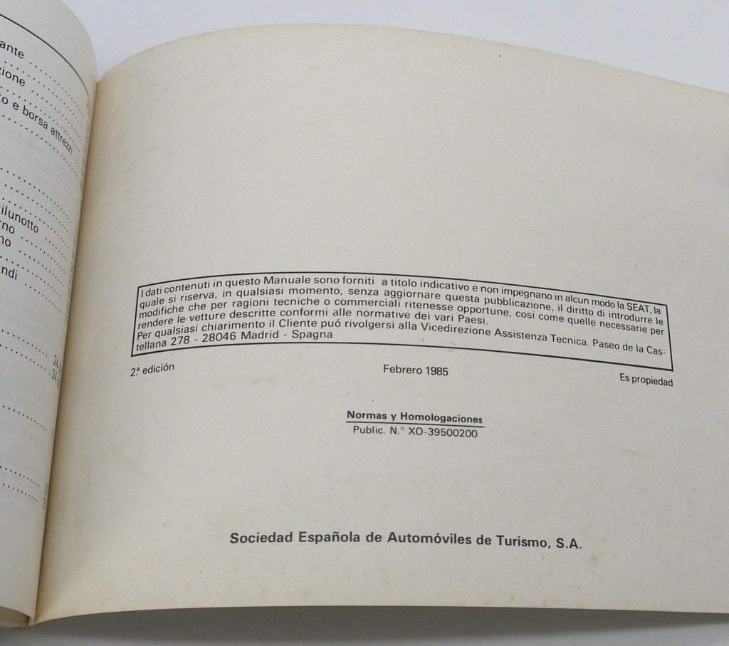 Manuel du propriétaire d'origine Seat Ibiza 1.2L/GL/GLX/1.5 GLX - Période : 1985
