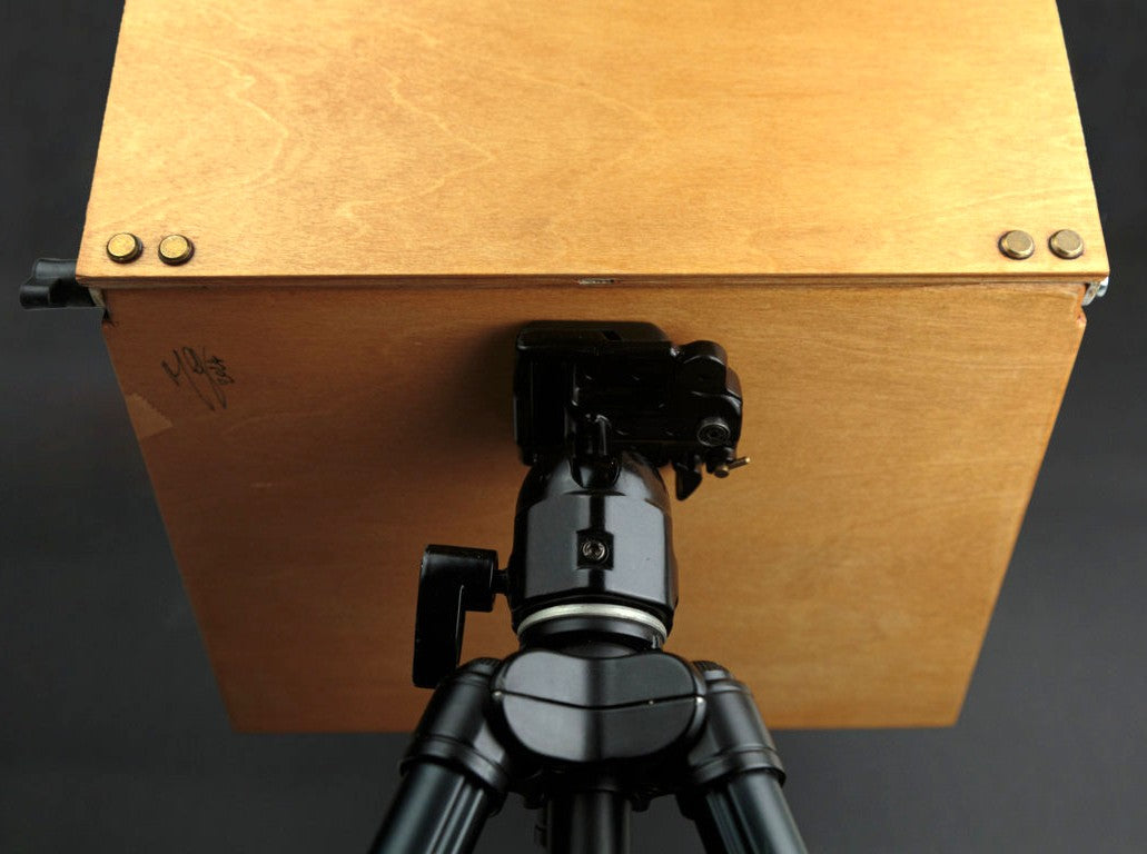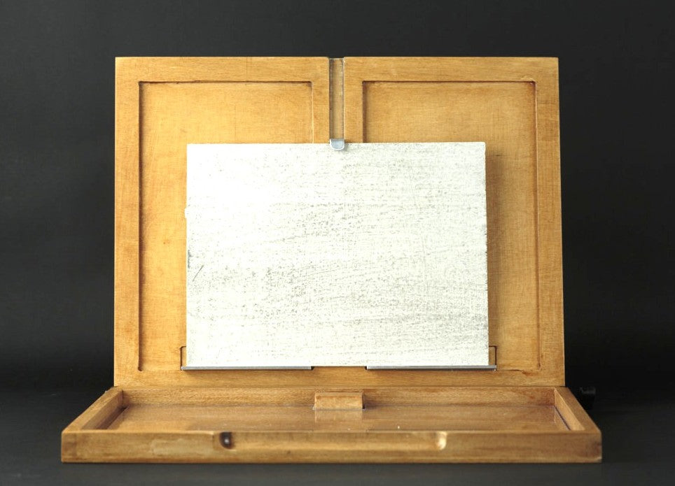 Palette portable légère, en bois de hêtre et de bouleau, entièrement fabriquée à la main, adaptable à tout chevalet de photographie ou pouvant être utilisée seule.