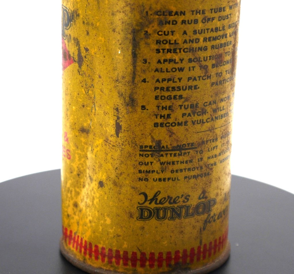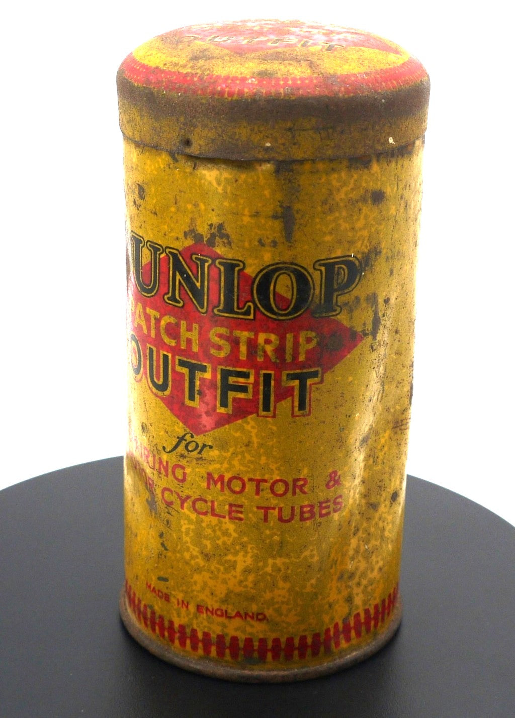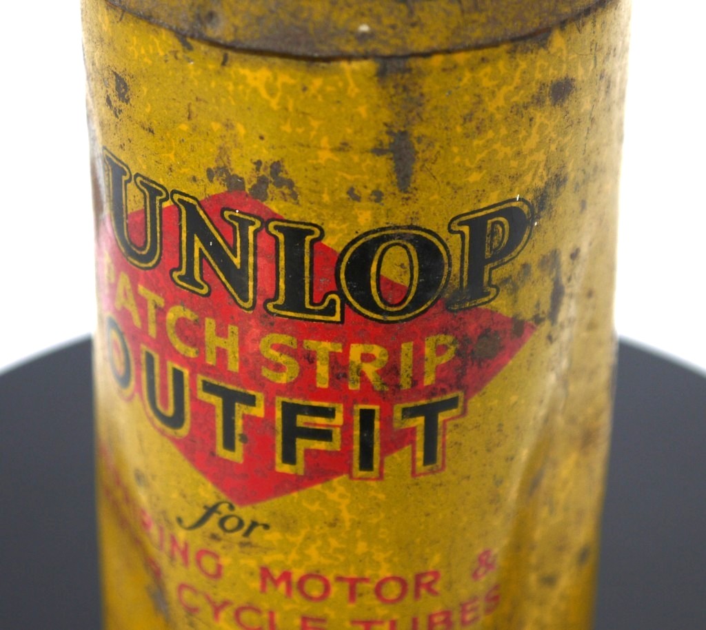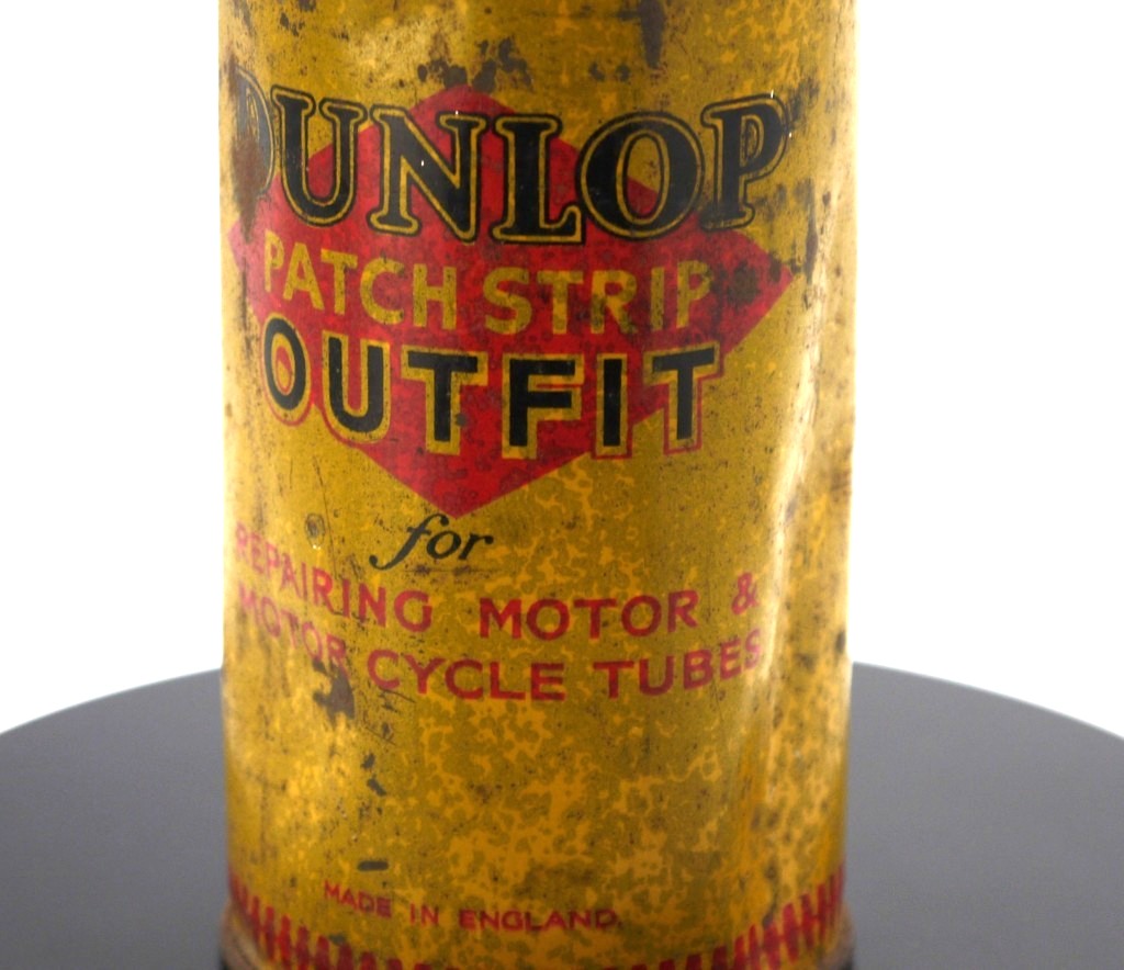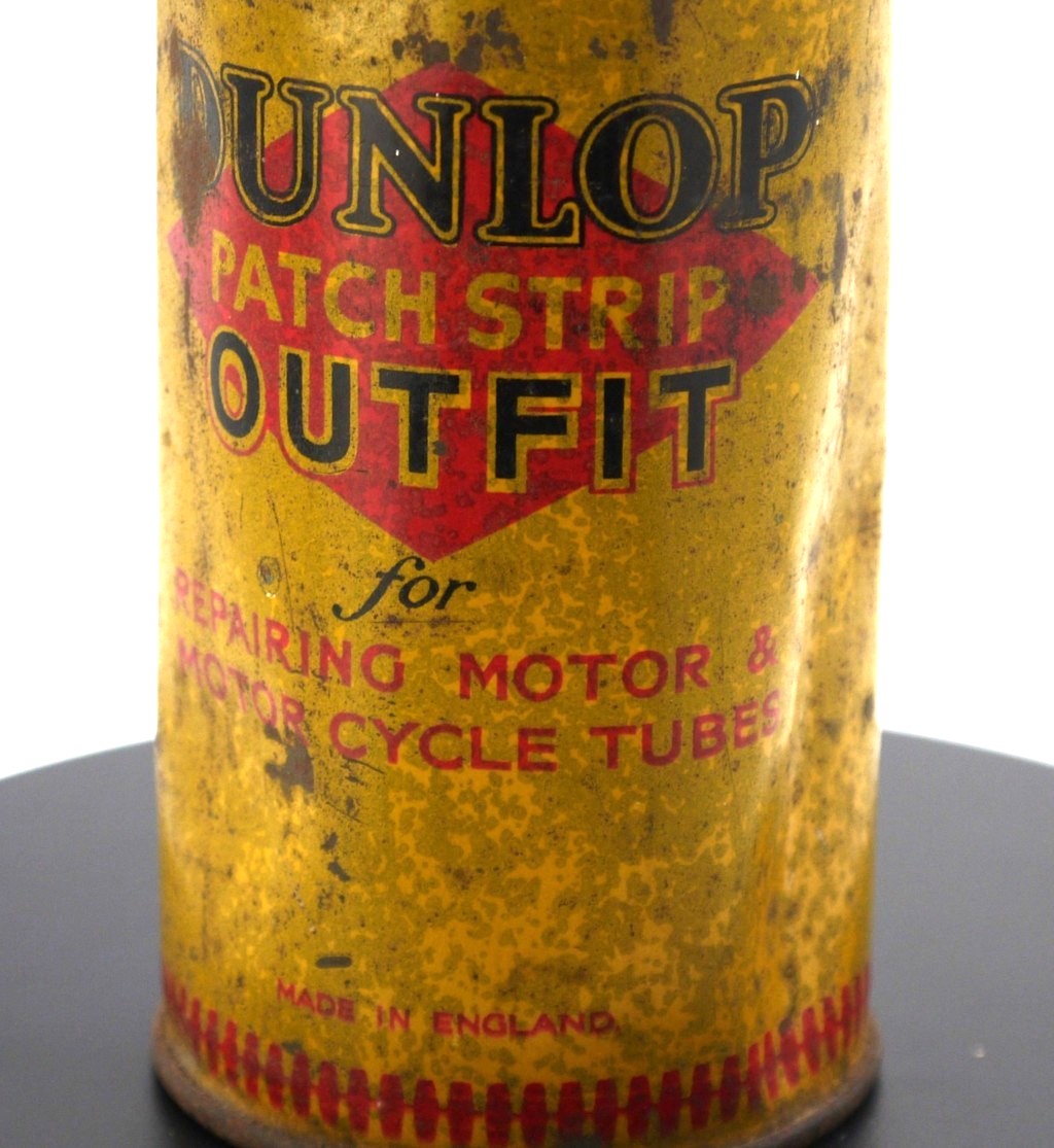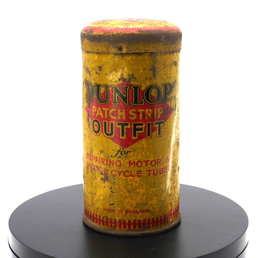 Boîte cylindrique en fer-blanc caractéristique du célèbre fabricant de pneumatiques Dunlop