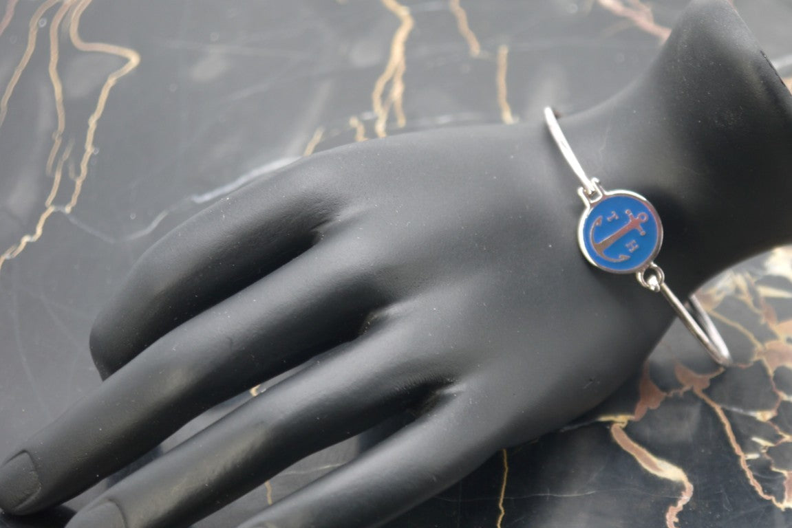 Bracciale Donna Tom Hope in ottone con placcatura in argento 925 e Logo centrale (Ancora) smaltato Blu