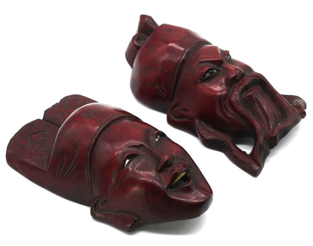 Coppia di maschere della cultura cinese fatte a mano in legno di Palissandro
